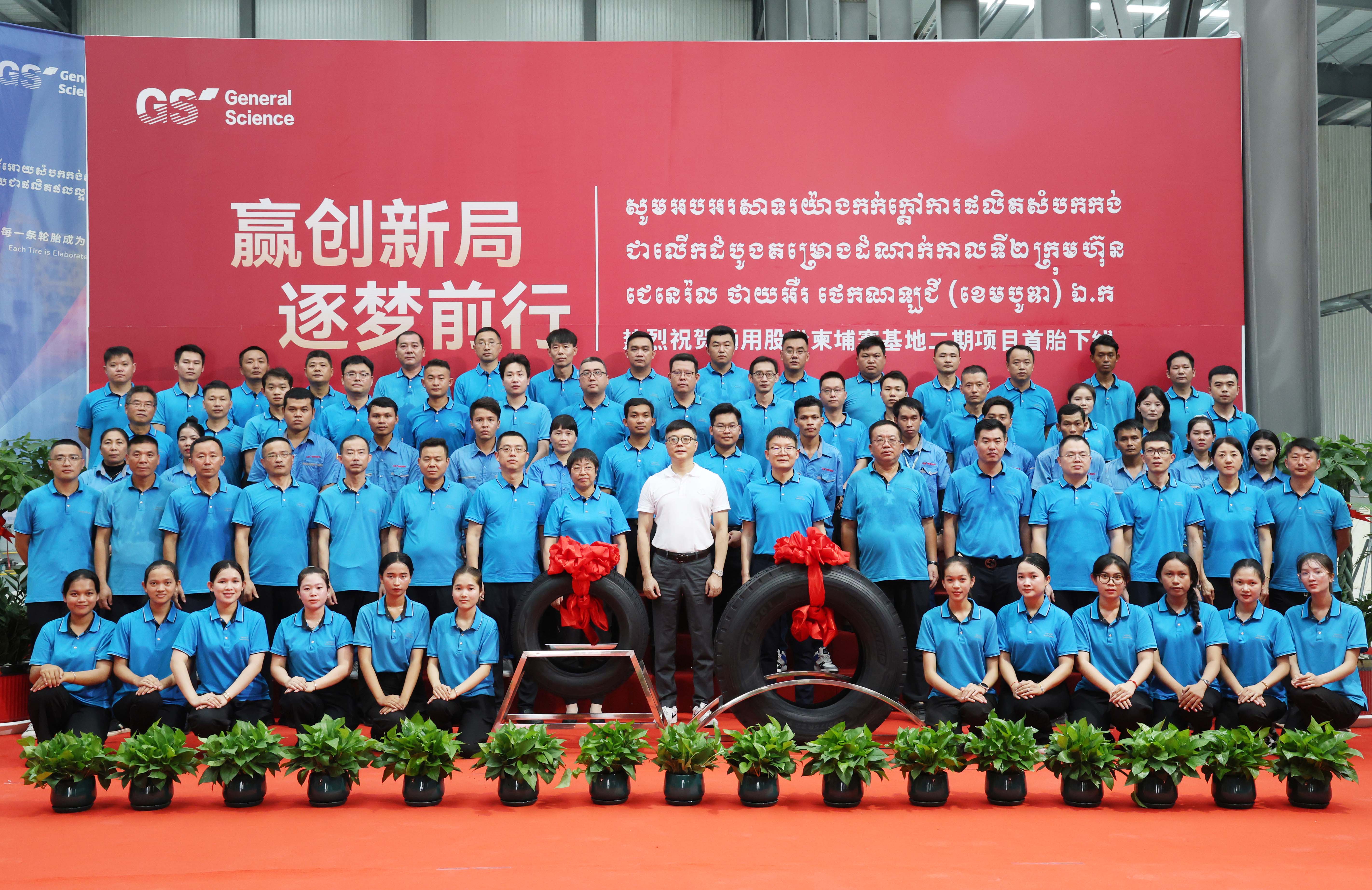 8月28日,通用股份柬埔寨基地二期項目首胎成功下線。通用股份董事長顧萃、海外公司總經理顧亞紅等領導及柬埔寨全體員工共同見證通用股