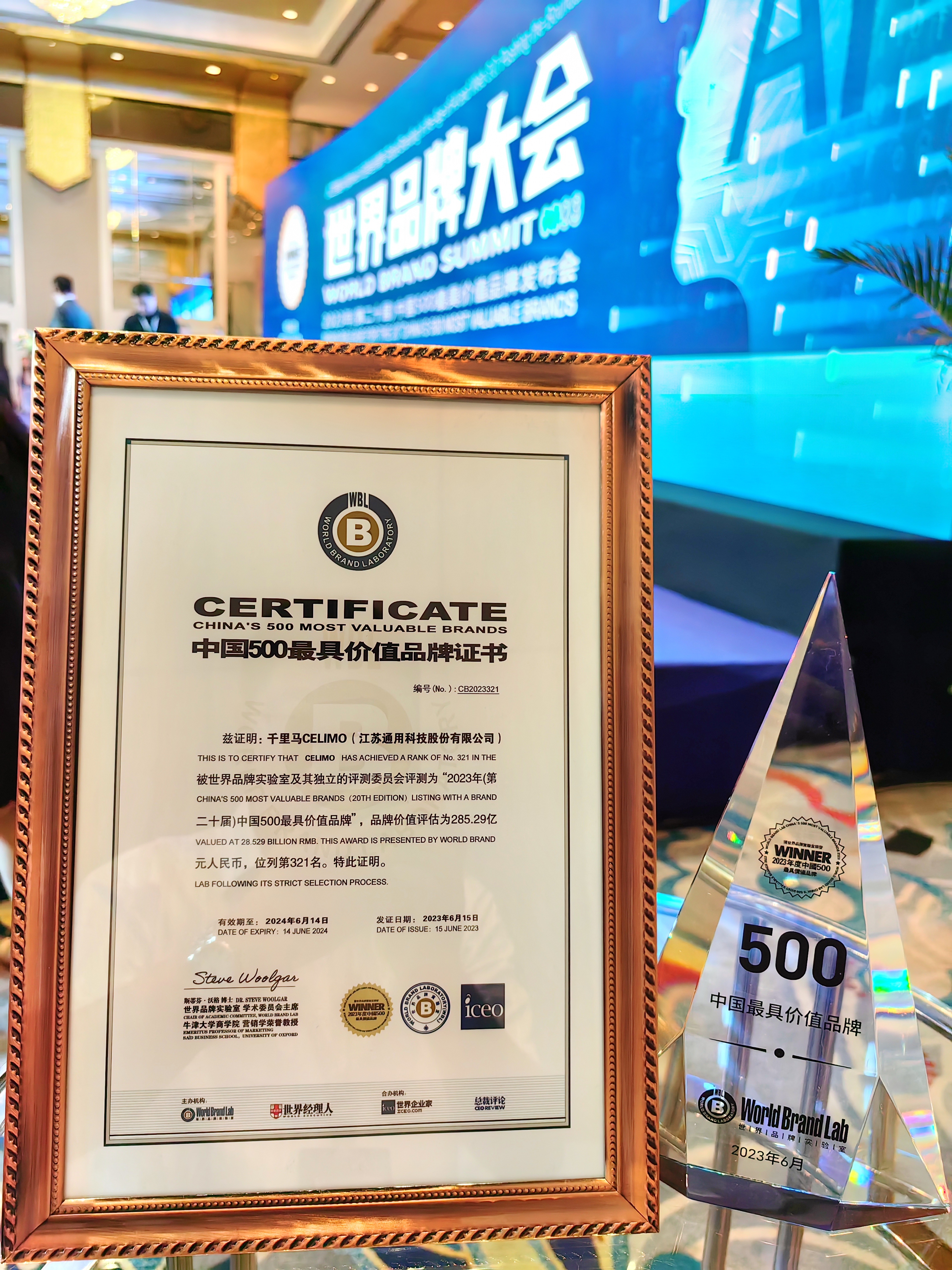 6月15日,由世界品牌實驗室主辦的第二十屆“世界品牌大會”暨2023年中國500最具價值品牌發(fā)布會在北京成功舉行。通用股份旗下千里馬品牌以285.29億元的品牌價值評估再次成功上榜,位列第321位,品牌價值與影響力進一步提升。