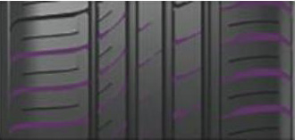 胎面非對(duì)稱的花紋設(shè)計(jì),既確保了優(yōu)異的彎道抓著力又分散了轉(zhuǎn)向時(shí)產(chǎn)生的接地壓力。